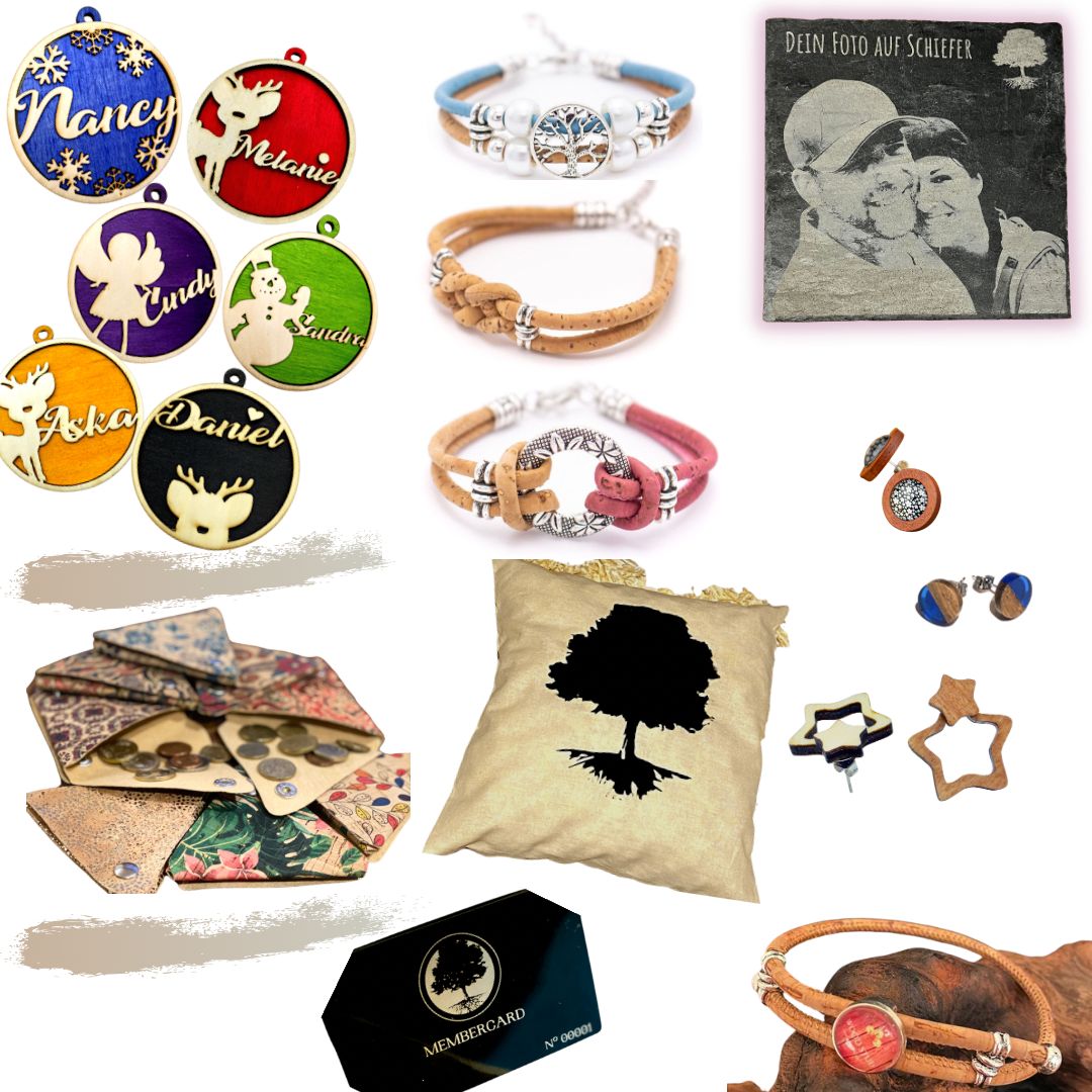 „Wir sind Daniel, der Chaot und Tüftler (35) & Melanie, die kreative und gute Fee (31) hinter den Kulissen von „wood stud“. Wir wohnen im beschaulichen Wintersdorf im Altenburger Land und stellen seit gut einem Jahr in liebevoller Handarbeit Naturschmuck, sowie Alltagshelfer und Dekoration aus Naturmaterialien her. Unser Holz- und Korkschmuck ist frei von Nickel und somit auch für empfindlichere Hauttypen geeignet. Darüber hinaus zeichnen sich unsere Lieblingsstücke durch einen hohen Anteil an Personalisierbarkeit aus. Gestalte so ganz einfach deinen Holz-und Kork-Schmuck oder beispielsweise dein Frühstücksbrett mit einem individuellen Motivwunsch. Der Kreativität sind fast keine Grenzen gesetzt. Diese Collage dient als kleiner Einblick in unsere sich stetig erweiternde Produktpalette. Mehr Informationen und alle Lieblingsstücke sind in unserem Shop (wood-stud.de), sowie auf FB und Instagram zu finden. Wir freuen uns auf deinen Besuch!“